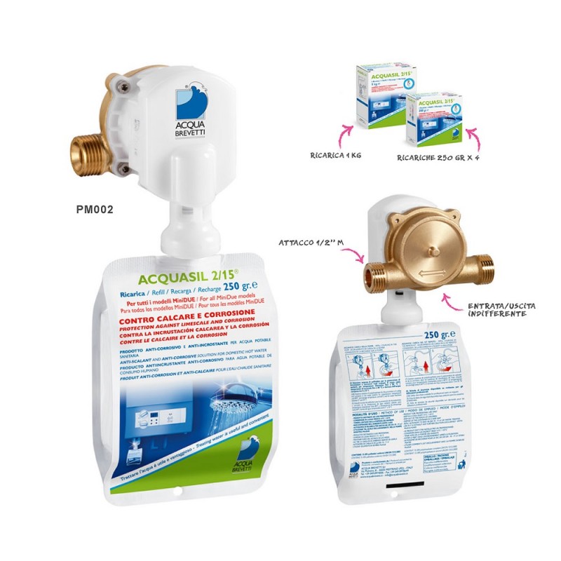 MiniDUE permette di prevenire la formazione di incrostazioni calcaree e l’innesco di fenomeni corrosivi negli impianti di distribuzione dell’acqua idro-termo-sanitari, ed in generale nei circuiti con acqua a perdere. Il dosaggio proporzionale di AcquaSIL 2/15® consente inoltre di risanare gradualmente, impianti già incrostati. MiniDUE è particolarmente indicata per la protezione di piccole utenze come caldaie domestiche con scarsa disponibilità di spazio. MiniDUE si adatta facilmente anche agli spazi più ridotti. Dotata di sacca di stoccaggio di AcquaSIL 2/15® da 250 gr usa e getta. MiniDUE dosa esclusivamente il prodotto AcquaSIL 2/15®